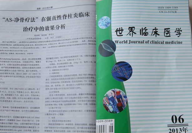 近日,最新出版的国家卫生部主管权威医学杂志《世界临床医学》正式对外刊发了AS-净骨疗法…[详情]