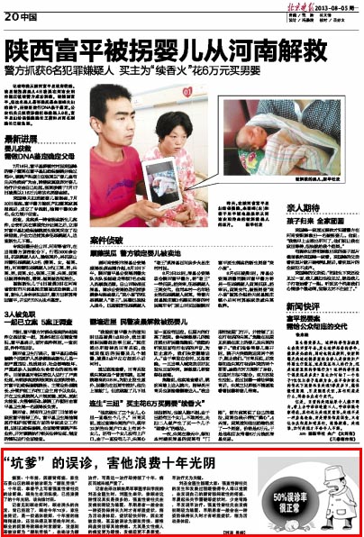 郑州晚报:“坑爹”的误诊,害他浪费十年光阴